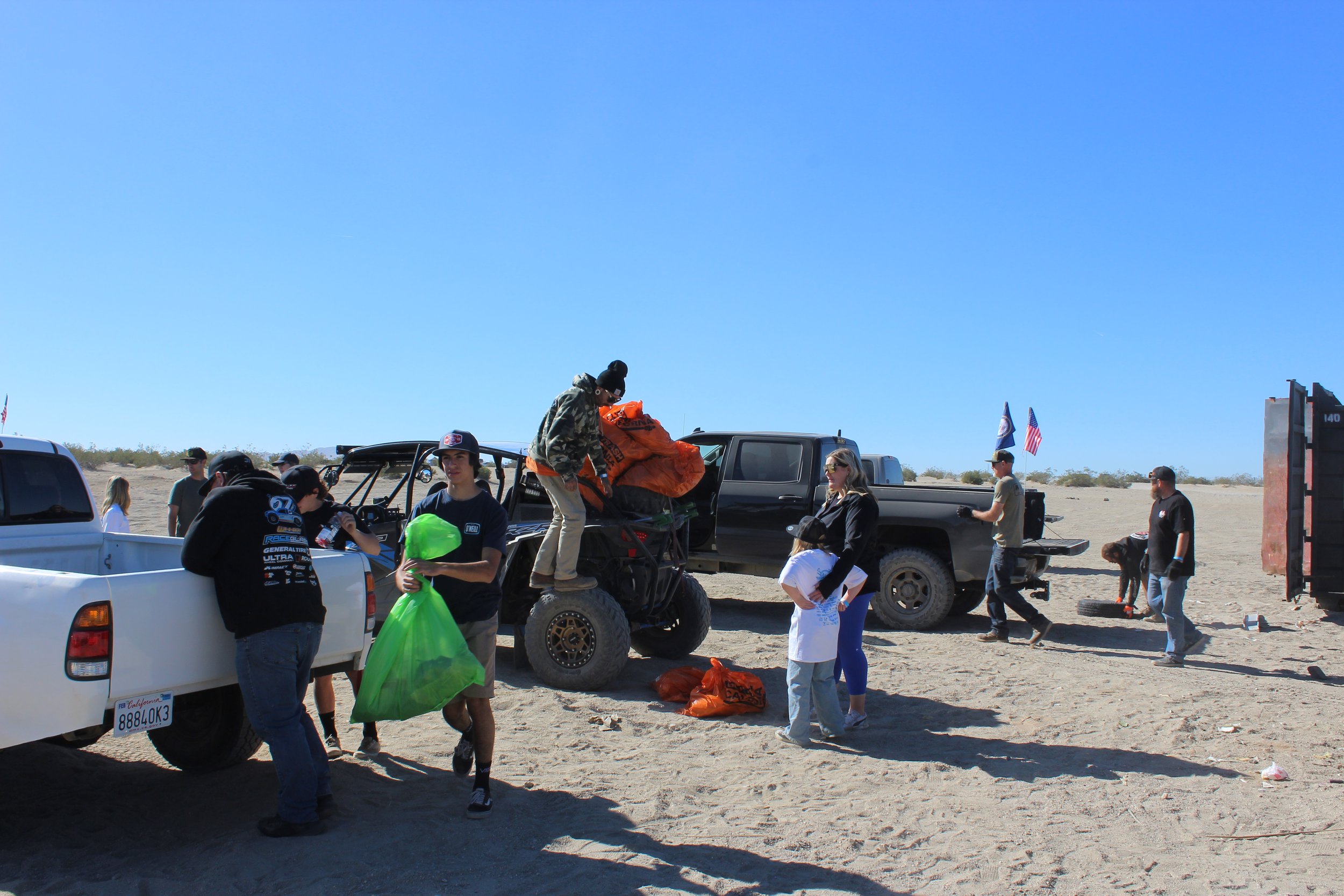 Now is the time for the staff to relax. We have made it a tradition to go to Oggi’s, who happens to be one of our sponsors, to grab dinner and reflect on the work we had done. After dinner and some great stories around the camp fire we learned that a special Elf made a special appearance for the Friends of Oceano Dunes and even snuck into a picture! All in all, it’s amazing what an idea, some phone calls and great friends can pull together. Its not about just cleaning the desert, its about making friends, supporting each other and keeping our public lands Clean and Open. I want to thank each and every sponsor, volunteer and our staff. This event was the smoothest it has ever run, and the people who help us put it on are amazing. If you ever see anyone wearing a Clean-Dezert hat, shirt or sticker please thank them for the support to keep our deserts clean.